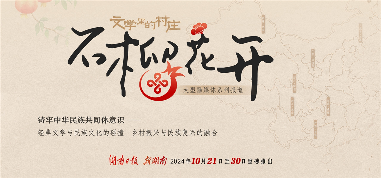 在习近平总书记鲜明提出“中华民族共同体意识”10周年及文艺工作座谈会召开10周年之际,在全国民族团结进步表彰大会刚刚落幕之时,湖南日报精选8位作家和他们多个奖项的作品,派出8路融媒体团队,奔赴多彩的民族村庄进行采访。精选民族经典,穿越大美中国。自10月21日起,湖南日报推出《文学里的村庄·石榴花开》大型融媒体系列报道,书写民族村庄的时代巨变,描绘各民族如石榴籽一样紧紧抱在一起,共建美好家园的壮美画卷。