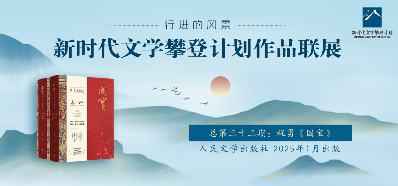 2022年,中国作家协会隆重推出“新时代文学攀登计划”,对以长篇小说为主的优质选题提供支持,充分发挥由全国重点文艺出版社、重点文学期刊等成员单位组成的联席会议作用,从作家创作、编辑出版、宣传推广、成果转化、对外译介等多方面统筹协调,形成联动机制,推动新时代文学高质量发展。中国作协创研部、中国作家网联合推出“行进的风景——新时代文学攀登计划作品联展”系列专题,将对计划入选作品逐一展示、阅读、评论、探讨,并以融媒体的形式与大家携手攀登文学高峰。2025年8月总第三十三期,让我们一道走进祝勇的《国宝》。(本期主持人:刘雅 王清辉)