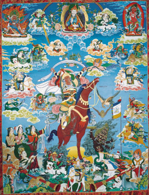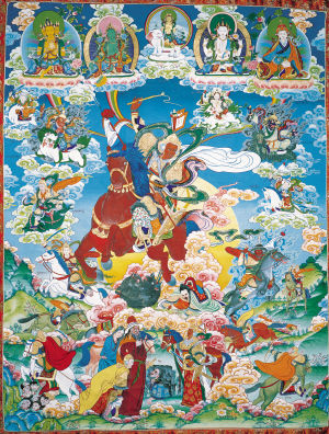 过去通过口耳相传方式传承的《格萨尔》,在影像时代将以生动的形式呈现在银幕上,令人期待。唐卡《格萨尔出征》。