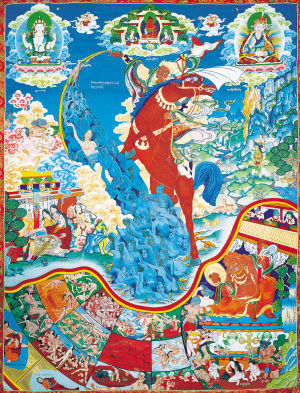 过去通过口耳相传方式传承的《格萨尔》,在影像时代将以生动的形式呈现在银幕上,令人期待。唐卡《地狱大圆满》。 资料图片