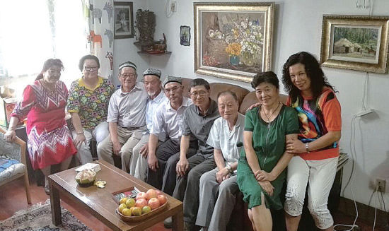 来到当年丝绸厂副厂长马哈木提·斯迪克的家中,白发苍苍的主人在家中的葡萄架下摆下了切好的西瓜,拿出一本旧相册老泪纵横:“你看,这是我当时从浙江、江苏带回来的纺织女工,这些都是鲜花一般的姑娘啊,你说我马哈木提是不是最幸福的人。可是,这些鲜花般的姑娘都走了啊。有的人都去世了,只要我活着就会不停地想念她们。”