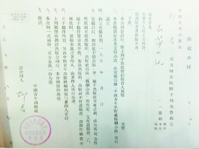 8月7日,柳青和出版社签订了《约稿合同》。这是一份制式合同,出版方盖的是“中国青年出版社约稿出版合同专用章”。柳青在约稿内容的空白处填写了“长篇小说”几个字,并签下了自己的名字,填写了具体的年月日。这份合同的签订,标志着柳青把长篇小说《创业史》正式许给了中国青年出版社。
