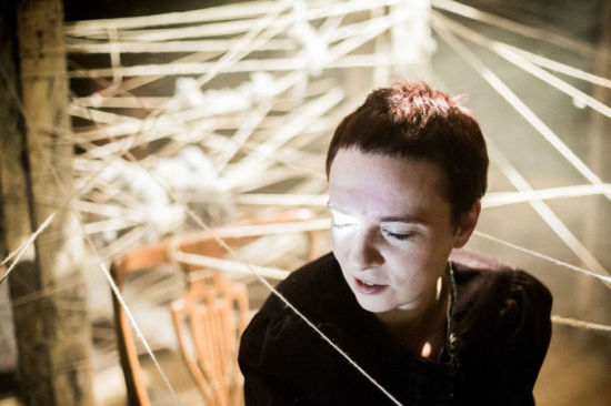 演出的第二空间才是《藏匿》真正的“发生地”。闭塞阴暗的空间里,弥漫的雾气(尘土)阻挡了观众前行的视线,穿梭其中的观众,警惕般地弯腰前 进,他们与蛛网般密密麻麻的毛线、凌乱的旧式家具、孤独无助的女人擦肩而过,探寻着各自的位置。此时,一切的外在联系均被阻隔,剩下的惟有拥挤、迷茫,以 及无处遁逃后的压抑、恐惧。时间仿佛从此停滞,而恰在此时,“故事”开始了:纳粹的到来打破了黑暗的平静,早已坐在人群中的四个女人开始疯狂地跑动起来。 变形的肢体、急促的语气,纵然观众看不清她们紧张的面孔,却依旧可以感受到其求生的强烈欲望。混乱中,两个躲避的少女逃至索尔斯卡家,年迈的索尔斯卡收留 了她们,漫长的藏匿生涯由此开始。她们跟那些同样隐藏起来的犹太妇女一样化用假身份,把自己的头发染成“雅利安人”的式样;为了生存下来,还把羊毛打成制 衣用的毛线,靠他人带到外面销售。然而,纳粹的再次出现击碎了她们活下去的全部梦想。可怕的敲门声像是死神的召唤,尽管有索尔斯卡的保护,但最终一名躲在 橱柜里的少女还是被纳粹捉进了集中营。另一位少女虽然逃过此劫,可在剩下的岁月里,她与索尔斯卡一样,经历着灵魂的拷问和世间的冷漠……在相同的时空内, 观众目睹了身边发生的一切,他们痛心于少女藏匿时的身份丧失、揪心于索尔斯卡同纳粹的一次次周旋、伤心于橱柜中少女求救时的绝望,就是这种近在咫尺的无能 为力,将身为藏匿者一员的观众与“故事”紧紧地联系在了一起。