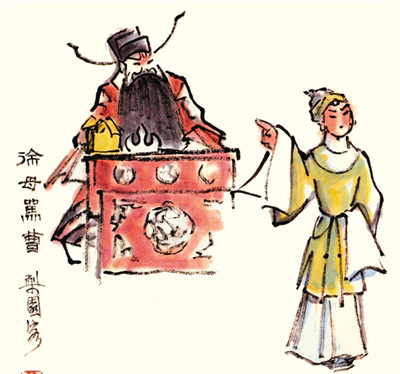 李滨声的画,把徐母的昂然正气和曹操的奸诈阴险表现得形象而鲜明。