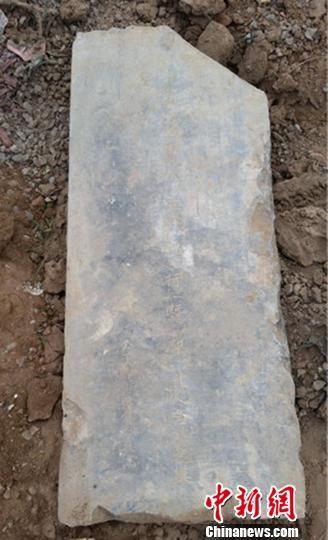 图为发现的“清封武德骑尉张玉春之墓”碑。沁阳市文物局供图摄