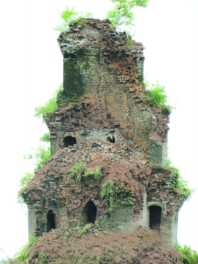 湖南江永县文峰塔在暴雨中坍塌