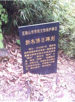 跟着采风团的壮汉前行,我似脚底生风,一路攀爬,文友们不时停下来拍风景,这时一块石碑赫然入目,上写:折木佛日碑刻,1932年7月,国民党政府派国民革命军第一集团军直属警卫旅长陈汉光率兵渡琼“剿共”。陈汉光“剿共”之后,继而“抚黎”,他剿抚并举,所到之处,都要刻石立碑以记功劳和纪念。石碑高120厘米、宽62厘米,楷体阴刻。现已成为五指山市级文物。