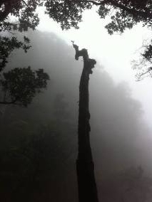 雨像过境的疯婆子,一会儿就消失了。雨停后,山上的雾气渐呈深浓的灰色,一棵枯树干在悬崖上颤抖,树枝张开时又像是忘乎所以地起舞,它显得那么孤独而自信,它是怎么枯朽的?老化还是雷击?