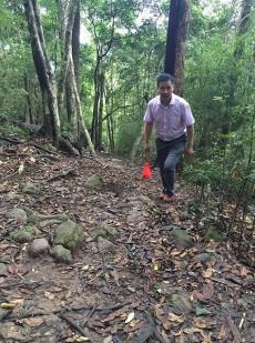 到了A20丢棍崖,此地海拔1539米,距五指山主峰1007M,祁将军和孙玉民都在喘息了,当然也有张大嘴巴的我,但此时每个人的精神是拥抱胜利的感觉,越过了后边树根缠绕的险路,望着前边一眼望不尽的崎路,我不由想起曾看过的一个资料,红军长征时毛泽东曾发布过一个行军告示:我们必须准备走大路、小路、直路和弯路。走过白天是黑夜路,走过黑夜是白天路,走过天涯还有路!走上坡路、下坡路、岔路和崎路,还要准备走绝路,走完绝路,我们再赶路!……不能确定这是毛泽东笔意,但此行军告示鼓舞人心,如号角一样鼓舞红军走完二万五千里长征,成为人类英雄史上的壮举。
