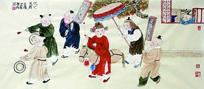 “择婿”唤作“捉婿”,动感立马增强,戏谑之情油然而生。那些为功名所累的学子们,“十年寒窗无人问,一举成名天下知”。于是乎,闻名而来求婚的人挤破了柴门。不管你是富家子还是穷酸儒,也不管你是少年郎还是老学究,只要是文曲星下凡,就不愁如花美眷送上门。话说福建有位叫韩南老的人,古稀之年进士及第,乡里人都想与他攀亲结贵。欲钓“金龟婿”的富户,便托媒妁登门求亲。韩南老觉得可笑,遂以打油诗作复:读尽文书一百担,老来方着一青衫。媒人却问我年纪,四十年前三十三。如果说这是齐东野语、坊间传闻,不足为信,那么下边这段轶事,却是见诸堂堂正史。