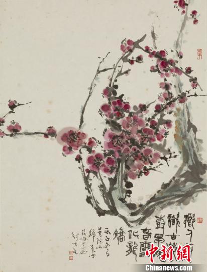 图为钱大礼中国画《红梅图》。 浙江美术馆 摄