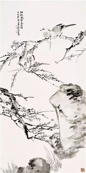 对于自己所走的学院派道路,阴澍雨深有感触。他坦言,在中国美术学院攻读中国画系花鸟专业时,是把实践创作作为主导方向。但在硕士和博士的学习阶段中,跟其他人文学科的学习一样,是把一定的精力放在学术研究上。经过论文写作训练,自己的理论素养也有所提升。“从学院教育来看自己的成长,我认为博士学习阶段是非常重要的,这给一个画家提供了一定的理论支撑,可以让一个艺术家的创作实践道路走得更为坚定和长远。”阴澍雨表示,一个画家对中国画的技法进行拓展并深入挖掘是有限的,它只是属于艺术的一部分。想要走得更远,必须有赖于绘画形式之外的支撑。“这很大程度上取决于一个艺术家的理论素养等。所以,学院教育对我的影响还是非常大,主要是正面地推动我成长。”