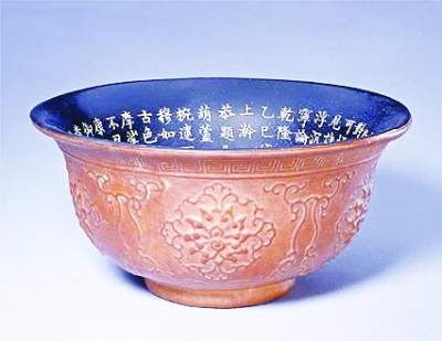 “康熙赏玩”葫芦碗,内书乾隆御诗《恭题壶卢碗歌》。