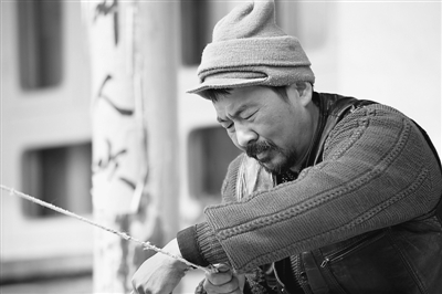 陈建斌并不缺乏爆发力,而是会根据角色需要予以调动。电影《一个勺子》中的“拉条子”改变了观众对他的固有印象,大量语言、肢体、眼神的细节塑造了一个真实的、“土得掉渣儿”的西北农民形象。在“拉条子”找“大头哥”要钱的一场戏中,陈建斌钻到巨大的“猛禽”皮卡下面擦车,“大头哥”没有看见他,车子启动后,他才从车下猛地钻出来大喊:“大头哥!大头哥!”“大头哥”赶紧刹车,“拉条子”趴在车头说:“是我啊。”一辆巨兽般的“猛禽”张开血盆大口,像是要吞噬一个渺小的农民,一下就把“拉条子”的滑稽、卑微表现得真实而生动。这是一个实实在在考验演员人物塑造能力的角色,需要演员具备坚实的创作技巧,以及不留痕迹、生活化的表演功底,调动起全部情感化在角色身上。在这种角色身上,表情丰富与否已经变得不重要,观众更关注的是演员对角色内心情感的感受与表现是否真实。