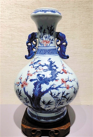 杨卫告诉记者,青花釉里红出现于元代,无论从传世数量、工艺难度、创烧时间及装饰效果来看,青花釉里红的技术含量最高,相较于青花的淡雅、釉里红的热烈,青花釉里红则兼具二者之美,形成青红相间、冷暖对比、动静相宜的审美特征,弥足珍贵,让自己很痴迷。