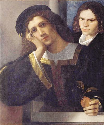 乔尔乔内油画《双人肖像》,罗马威尼斯宫博物馆藏
