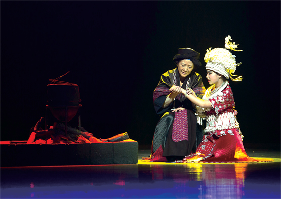 第五届全国少数民族文艺会演精彩纷呈。9月上旬,侗族音乐剧《嘎老》和苗族舞蹈诗《巫卡调恰》两台剧目将与观众见面。《嘎老》围绕男女主人公寻歌之旅展开,通过侗族大歌、琵琶歌等侗族音乐与现代音乐的碰撞,展示出侗族音乐的魅力,并诠释侗家人“没有什么比唱歌更重要”的精神追求。《巫卡调恰》的创作根植于当地苗族文化,又拓展到整个苗族社会,通过巫卡吟唱古歌这一主线,诠释了苗族人的创世观,反映了古代苗族人的农耕文化、苗族迁徙史以及苗族社会生活的各种习俗等。 图为《巫卡调恰》剧照。 (明 江)