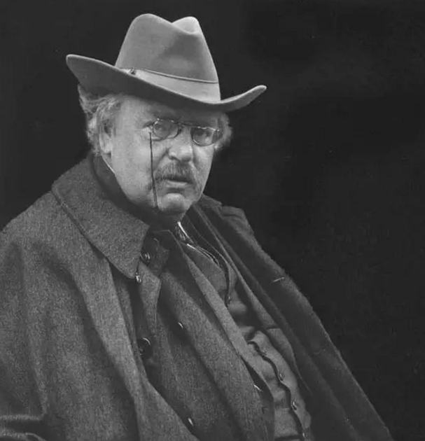 G. K.切斯特顿(Gilbert Keith Chesterton, 1874-1936)是英国小说家、诗人、随笔作家、报纸撰稿人、基督教护教学家。一生著书八十余部,出版有自己的刊物(《OK.周刊)。在去世之时,他已经是英国最受尊敬、著作被最广泛阅读的作家之一。切斯特顿身材高大,个性开朗,胃口、酒量都很大,而且交友众多,喜欢穿一件大披风,手拿剑杖。