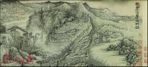《搜尽奇峰图》卷,清,石涛 纸本,此图是石涛50岁云游京师所作。印证了作者所提倡的师法造化“搜尽奇峰打草稿”的美学观。该画在表现上,于奇险中见雄浑,严谨处寓虚空。虽看似笔墨豪放,皴擦点染尽在无意,而在整体上却把握了峰峦层次,云气走向及林木隐现的神韵。