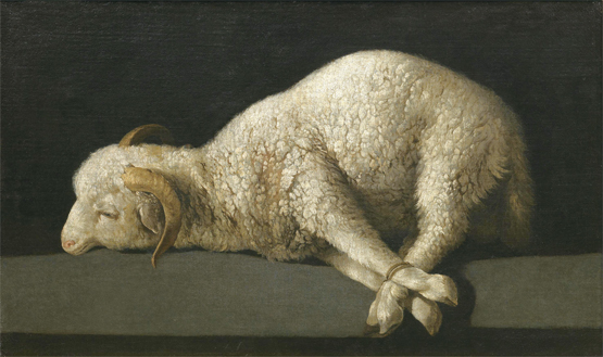 《天主羔羊》,弗朗西斯科·德·苏尔瓦朗,1635年至1640年,布面油画,37.3 x 62厘米,现藏马德里普拉多博物馆