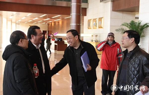 11月28日,中国作协第九次全国代表大会与会代表在报到时交谈。