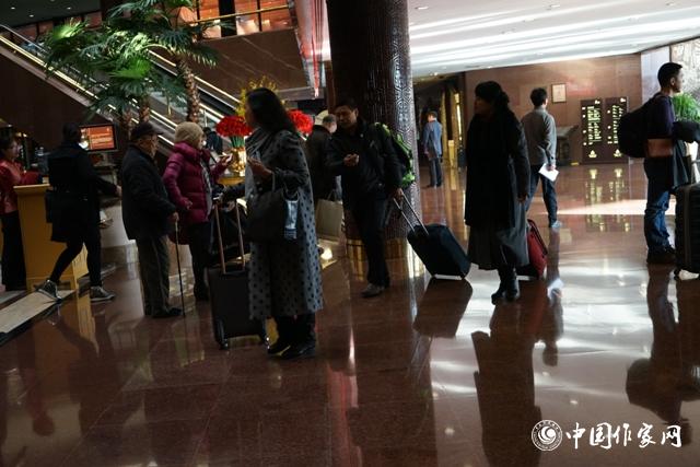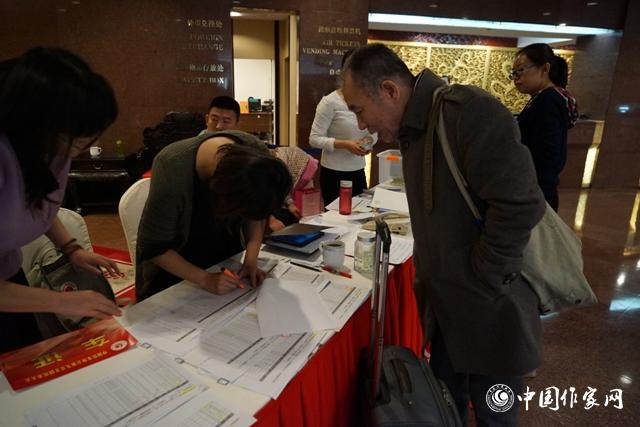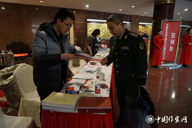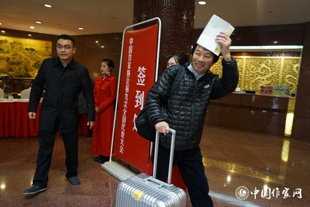 11月28日,中国作协第九次全国代表大会与会代表温亚军报到。