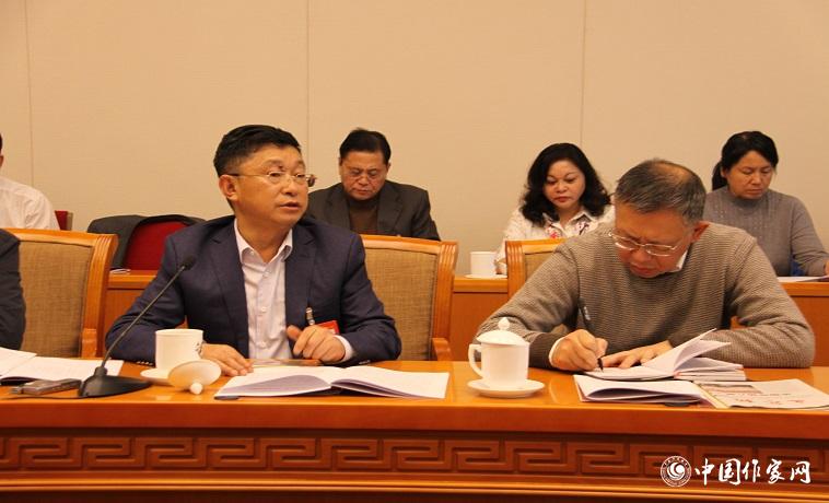 11月30日,黑龙江、四川代表团分组学习讨论,代表阿来发言。