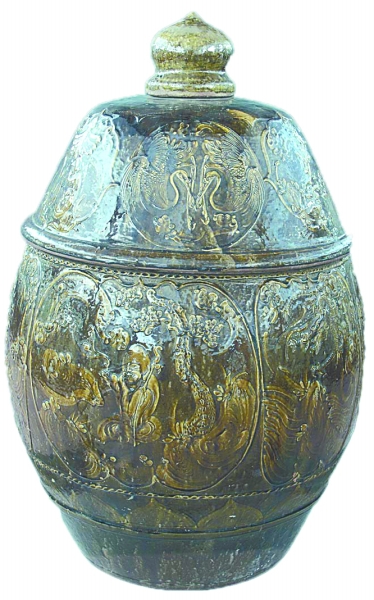 河北省丰宁满族自治县是多民族地区,曾先后有肃慎、山戎、匈奴、库莫奚、契丹、女真、蒙古、满洲等民族聚居,他们在这里创造了灿烂的民族文化,同时也给后世子孙留下了大量的珍贵文物。丰宁博物馆收藏着一件辽代的“三彩瓷枕”(左图)。这件“镇馆之宝”学名是“三彩云头形双碟牡丹纹贴花狮面五角长方形枕”,是辽代的生活用品,目前在全国是唯一一件。右图为“和尚坐罐”,又叫“蟹青釉开光龙凤仙人寿字松鹤纹带盖葫芦顶大瓮”,为元代和尚的丧葬用品,全国也只发现两件。