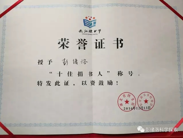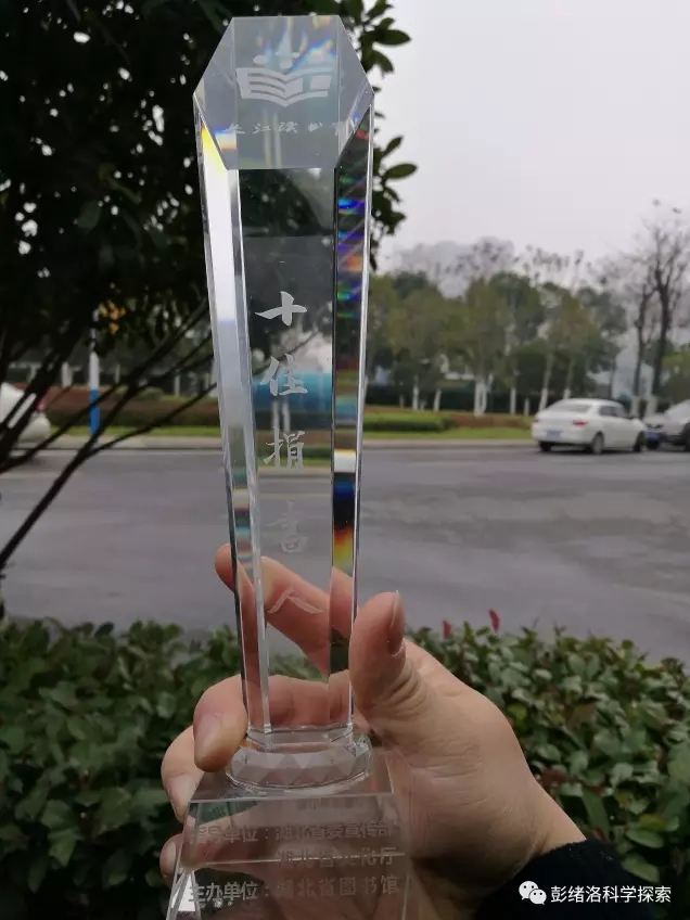 这次是老家宜昌市图书馆给我申报了这个奖项,感谢家乡图书馆对我努力付出的肯定,更感谢家乡父老乡亲对我的关注和支持。