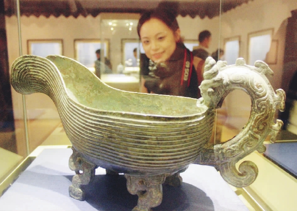 近日,“烟云四合——清代苏州顾氏的收藏特展”在江苏苏州博物馆展出。展览展出故宫博物院、中国国家图书馆、上海博物馆、南京博物院等国内9家文博机构的顾氏所藏书画、古籍、碑帖、文房、青铜器等精品84件。内容涵盖了宋、元、明、清的书法、绘画、古籍、碑帖及文房用品、顾氏一门手迹等。图为观众在特展上参观“西周齐侯匜” 。