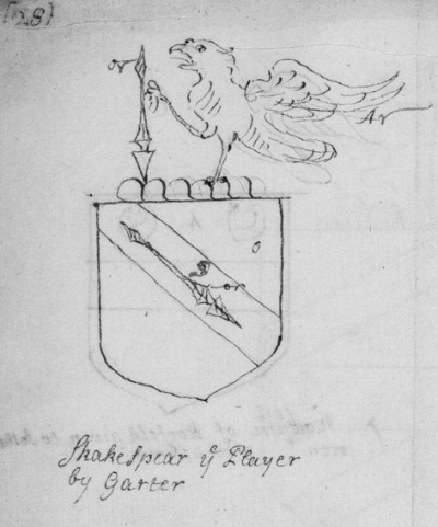 为了寻找更多有关莎士比亚生平的直接证据,研究者们一直在不懈努力。2016年6月29日,《纽约时报》刊登文章,“莎士比亚:演员、剧作家、出人头地者”,报道美国华盛顿福尔杰莎士比亚图书馆手稿部主任希啬·沃尔夫最近发现了一批关键证据——13幅绘制于16世纪末至17世纪初的莎士比亚家族盾徽草图,其中一多半图上有“戏子莎士比亚,袜带骑士绘”(Shakespearetheplayer,byGarter)等字样。Player一词,既有“戏子”之义,又有“伶人;演员”之义;Garter一词是“袜带骑士盾徽长”(GarterKingofArms)的简称。为了说明袜带骑士盾徽长是个什么官职,得先从盾徽说起。