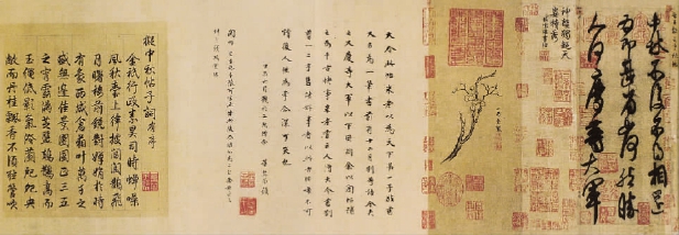 《三希堂法帖》之“三希”在近代的战乱中,经历了颠沛流离, 《中秋帖》与《伯远帖》在遭遇动荡离宫之后,四易其主,最终在27年之后于1951年又归藏于北京故宫博物院至今,而命运多舛的《快雪时晴帖》最终漂泊了大半个中国,流落至千里之外的台北“故宫博物院” 。现如今,三希堂依旧面貌未变,而世传的“三希”法帖却无法再聚首,南北遥望,惺惺相惜,相互思念,不禁令人慨叹。2010年,在海峡两岸授权之下,让有三百年历史的古书画老字号——荣宝斋,采用高仿工艺,原作规制,实现“三希”的重聚,终得安慰。