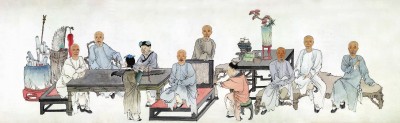 清代胡芑孙、任薰《吴郡真率会图》,描绘的是当时文人雅集的情形,画中左一是过云楼第一代主人顾文彬。