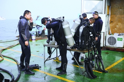 “沉舰残余部分在海底淤泥中保存状况较好,舰体外壳钢板强度较高。可惜的是,致远舰舰体原有高度应该在8米左右,而现存高度仅2.5米,按此推算,舰舱高度已被切削掉一半,舰体损毁相当严重。”周春水说。