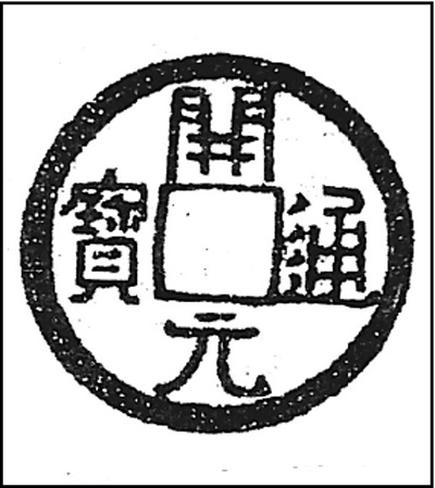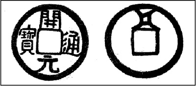 图②:河曲六胡州之安国的“开元钱”,钱面是“开元通宝”,钱幕是该部的族徽。