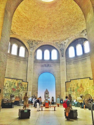 中国艺术是美国宾夕法尼亚大学考古和人类学博物馆的收藏特色之一,其中国展厅设在博物馆建筑最核心区域———一座圆形的大厅内,拥有数量质量均可观的中国古代青铜器、陵墓石刻、佛教雕塑和寺观壁画等,曾经引领过北美地区中国艺术的收藏风潮。“中国圆厅”甚至成了北美学界的专有名词,专指宾大博物馆主穹顶下收藏着的艺术奇珍。图从左至右分别为宾大博物馆馆藏唐三彩马以及“中国圆厅”内景。
