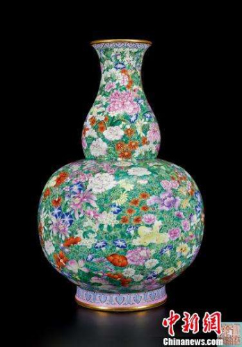 乾隆洋彩万花献瑞图大吉瓶。拍卖公司供图
