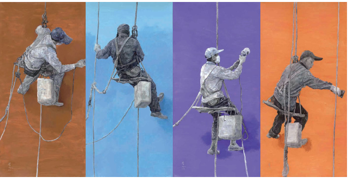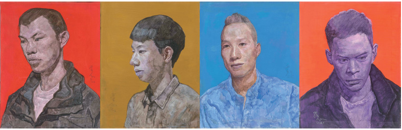 此次展览中最引人关注的是刘向东用水彩的创新技法表现的城市打拼者的精神样貌。这些作品虽然是具象写实,但没有流于简单的形象叙事,而是试图通过对一个个人物无意识表情的捕捉,来揭示当代人在物质化生活中形成的某种典型的心理状态。他描摹的知识分子有着白皙而偏冷的面色、闭目冥想的表情、定睛却若有所思的神情,揭示了他们焦虑而抑郁的心理症候。他笔下的青年形象,即使他们的眼睛闪烁出自信而充满期待的目光,却仍掩饰不住某种戏谑和萎靡的精神心绪。对于那些打工者而言,刘向东更是抓住了嘴唇微张、舔舌咂嘴等神态,鲜活真实地表达出那些民众的社会身份。