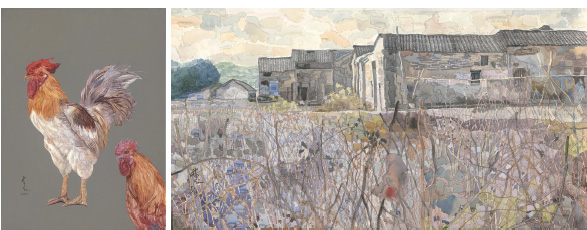 骚鸡公(布上水彩) 客家居(纸上水彩)