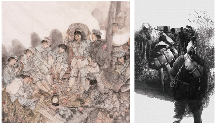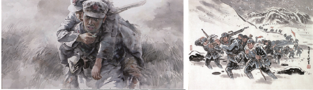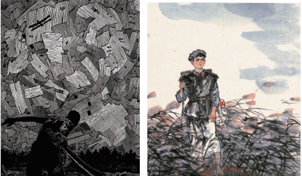 表现形式的自由和文学性的叙事方式是连环画的特质与优势。入选作品中既有《走过长征的过山炮》(白润祥)那样的笔意酣畅刚劲、气势磅礴的宏大叙事,也不乏《红军长征故事——女红军故事》(唐鼎华)一类的轻松灵动、活泼精巧的感人故事;既有《长征——理想与信念的诗篇》(张晓东)利用传统画种的天然属性创造的精神图式,也有《第一骑兵师》(郑万林)融会贯通了外来艺术的个性化表达。画家们以富于时代气息的艺术语言和表现方式,丰富和深化了连环画文学性的内涵。