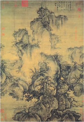 天下的时空一体化尺度就通过经验而潜移默化在诗词书画中,诗词不仅是时间性的展开,同时也是空间性的展开;同样,山水画也不仅是空间性的建构,同时也暗含时间性的动态焦点。有个熟知的说法认为,西方古典绘画有透视的焦点,而中国山水画却是无透视的散焦点。对此我略有疑问,所谓国画“无透视”的说法是在对比西方古典油画的透视构图时而被认定的一个比较性特点,就是说,是只在比较的条件下才被规定的对比性质,并非国画本身的内在性质,而对于国画本身而言,是否具有透视性是无所谓的,因为对于国画而言,透视不是一个需要处理的问题。符合透视也罢,不符合透视也罢,这个问题丝毫不影响国画自身的营构逻辑。就国画中的焦点而言,我的理解是,山水画的空间性隐藏着时间性的动态焦点,即眼睛所至之处都是随行的焦点,更严格地说,国画的视觉引导方式不是点,而是线,所视为线,所谓视线,因此,如果一定要谈论焦点,就只能说是连成线的动态焦点。国画不是按照眼睛的视域(horizon)画出来的,而是按照身心一体的内知觉“写”出来的,简单地说,国画是写出来的,不是画出来的,因此,国画在写出一个经验世界时,并不考虑如何画出眼睛对世界的知觉(of the world) ,却要考虑人在世界中的状态(in the world) ,也许应该说,国画里的世界不是心外的“对象” ,而是心在其中的家园。