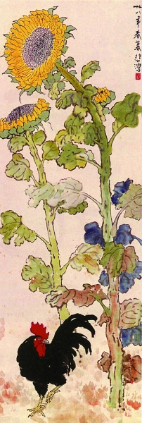 葵花雄鸡图(中国画) 徐悲鸿