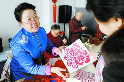 中国结艺术家也现场展示了“绝活”,为村民们编制并赠送了“手编红绳手链”。木版年画艺术家张阔现场印制的“灶王爷”年画引来村民争相索要,四九寒天里,张老师的额头却渗出了密密的汗珠。