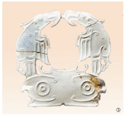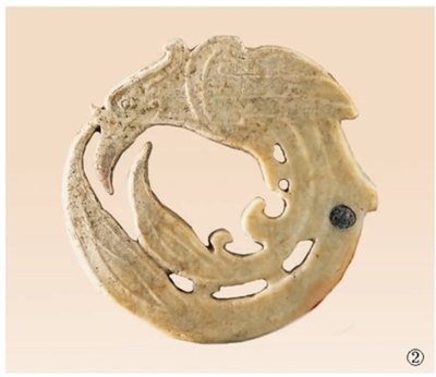 以往在湖南澧县孙家岗石家河文化墓葬中发现凤形透雕玉饰,在湖北天门石家河罗家柏岭发现团凤玉饰(图②),还有石家河谭家岭遗址新出土的双凤玉佩(图③),表明石家河文化居民对凤怀有特别的情感认同,他们应是神凤最初的缔造者。最初的凤形,应当是诞生于石家河文化,从此凤崇拜也成为一种规范的信仰方式,并且很快汇入史前造神运动的潮流中。