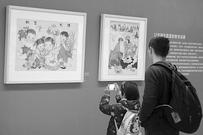 1月31日,观众在中国美术学院美术馆欣赏杨柳青年画《四季花开》。当日,《年画迎吉》特展在杭州的中国美术学院美术馆开展,展览由“中国美术学院年画收藏与教学文献展”和“苏州桃花坞木版年画展”两部分组成,展出国内各种风格的年画400余幅。 施健学摄/光明图片
