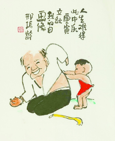 雅俗共赏,先说雅,何谓雅?雅者,书卷气,文人味,古色古香,简而言之,有文化人的气息。邢老的画雅在何处?我曾在一篇《奇缘·奇葩》的文章中有如下一段议论:“初读邢振龄的漫画,大有似曾相识、重逢故交之感。这个故交是谁?是他神交已久的丰子恺先生的漫画。有人说他的画是‘丰子恺再世’,我认为他是吸取了丰氏的艺术营养和手法,走自己的路,画自己的画,画出了有别于丰氏,又具有自己面貌的作品,是别开生面、别有洞天的作品。”联系邢老作品的雅来分析,他的作品在艺术上不是无本之木,而是有师承,但不是一味模仿师承,而是有取舍、有变化、有发展,变出了不同于丰氏,又具有自己的个性面目。
