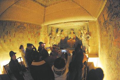 春节期间,众多游客在成都博物馆参观“丝路之魂·敦煌艺术大展暨天府之国与丝绸之路文物特展”。 本报记者 衡昌辉 摄