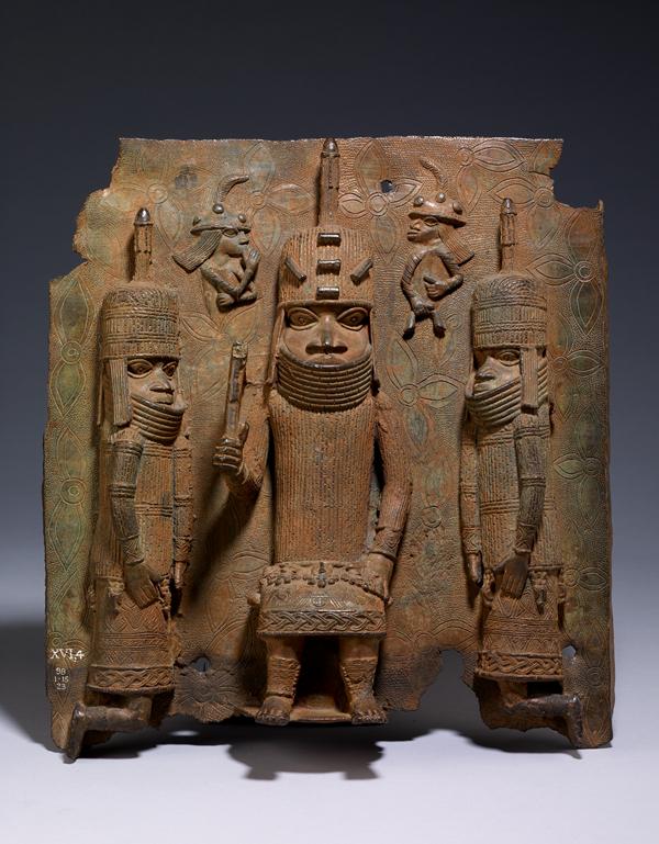 以贝宁饰板为例。许多人熟悉欧洲与非洲西部的这段贸易史,但关于它的大多数记载都来自欧洲人。而通过这些饰板,我们可以认识非洲人对这段历史的看法——在饰板的中央,是巨大的贝宁国王奥巴像,欧洲人的像比他小了许多,这象征了贝宁国王的势力。当然,欧洲人的记载是完全相反的,他们认为自己征服了贝宁。