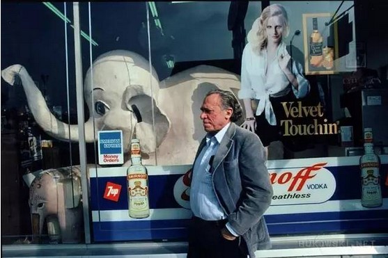 布考斯基被称为“洛杉矶的惠特曼”,这当然是说,他的诗和小说有着惠特曼般的粗犷和生命力。但他更关注底层社会,妓女,酒鬼,流浪汉,同样的失败者,他们的龌龊,坦诚,喜怒哀乐,生活的荒谬,以最为酣畅的方式抒写一切,正像威廉·洛根(William Logan)所言,在这里,“生活完全掌握了艺术”。这是一种现代主义的狄奥尼索斯精神,以最为原始的疯狂激情撕碎虚伪的一切。他的作品让底层人大笑,让理性保守者恐慌、颤栗。布考斯基在他的诗歌和小说中喜欢称自己为“柴纳斯基”(Chinaski),这似乎和他的中国情结有关。他在访谈中称莎士比亚是狗屎,却非常欣赏同样嗜酒的李白。李白的名言是:“天生我材必有用”,而布考斯基却通过他大半生的失败告诉我们:“天生我材必无用”,他在无用中挥霍着自我,体验着生存,嘲笑正统秩序的生活,这是他最为夺目的文学主题。