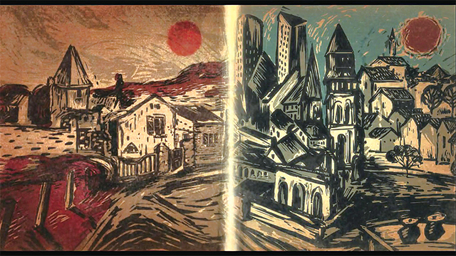 《盲眼维莎》使用的是非常典型的油毡浮雕版画风格。当然,是用数字设备在电脑上模拟绘制的。不过,尤西弗却使用了特殊的方式:拒绝使用电脑上的“撤销”功能——手握着刻刀实际制作油毡版画时就是这样,每一刀的操作艺术家都无法“撤销”。以此,尤西弗试着最大程度地还原用可触材料来创作的过程与心态。